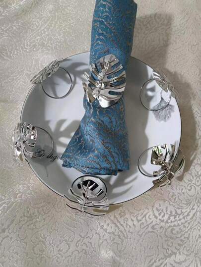 6pcs Leaf Design Napkin Ring, Silver Napkin Buckle, For Dining Table - Silver - View 1