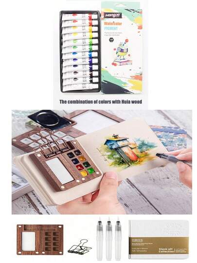 6pcs Mini Travel Palette Set, (Paints Not Included) Portable Watercolor Kit, 8-Well Paint Box, Sketchbook, Clipboard And Brushes For Artists And Students, Back To School Painting Supplies, Halloween And Christmas Gifts For Friends - Multicolor - View 1