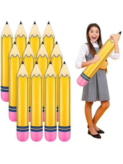 6pcs Of 15.5-Inch Giant Inflatable Pencils, Oversized Prop Decorations, Back To School Hanging Pencil Decorations, Birthday Party Gifts, Pool Party Props, Halloween/Christmas Gifts/Props - Multicolor - View 9