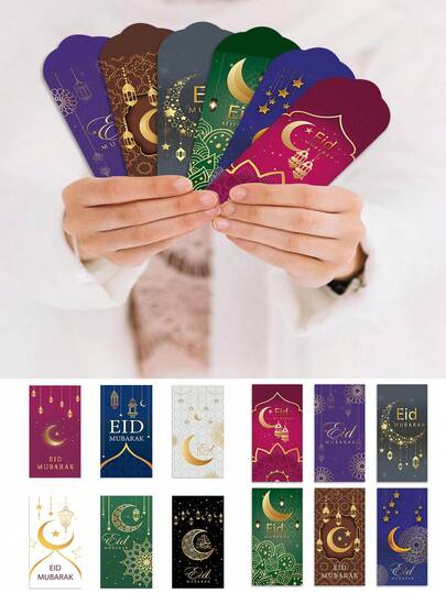 6pcs Ramadan Party Cash Envelopes, Eid Mubarak Cartoon Blessing Celebration Lucky Red Packets Greeting Cards - Multicolor - View 12