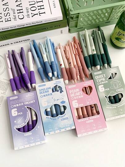 6 chiếc bút mực đen 0,5mm có thể thu vào với tay cầm thoải mái, viết trơn tru cho đồ dùng văn phòng và học tập, đồ dùng học tập, trở lại trường