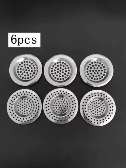 6pcs Round Stainless Steel Drain Cover For Bathroom Sink, Hair Filter Drainage Plug, Kitchen Sink Strainer Back To School - Silver - View 1