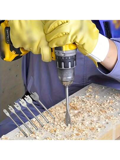 6pcs/Set Multi-Function Drill Bit Set | Fancy Flat Head, Spade Drill Bit, Industrial Woodworking, Stainless Steel Material, Hexagonal Shank, Bright Finish Flathead Drill Bit Set, Alloy Steel Paddle Bits With Quick Change Handle For Woodworking, Flat Wood Hole Drill, Various Drill Bits High Carbon Steel Spade Drill Bit Set | 10-25mm Flat Head With Hex Shank | For Woodworking - Multicolor - View 11