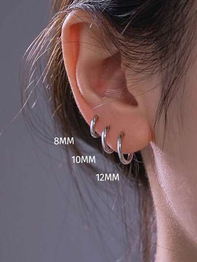 Bộ 6 khuyên tai vòng cơ bản bằng thép không gỉ, kích thước 8mm/10mm/12mm dành cho nữ.