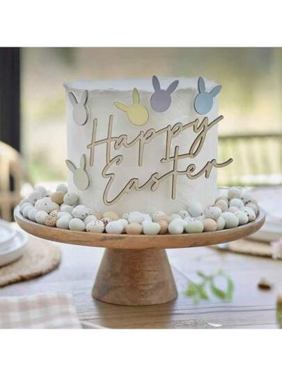 6pcs Woodiness Easter Color Rabbit Cake Topper For Easter Party DIY Dessert Baking Cake Decor Supplies - Multicolor - View 1