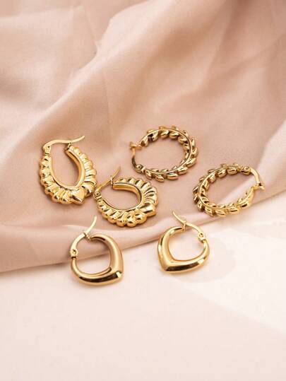 6pcs/set Vintage Stainless Steel Wheat Spike & Heart Design Earrings - Gold - View 1