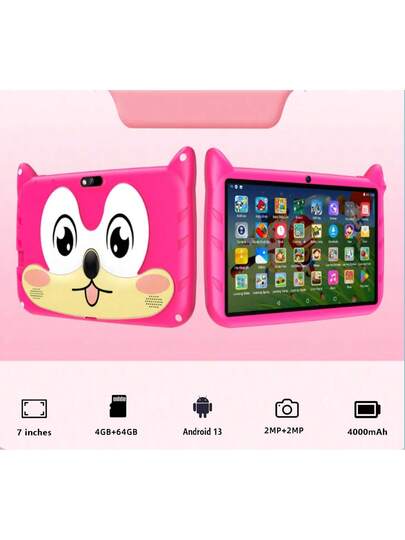 7-Inch Cartoon Pattern Children's Tablet PC, Quad-Core Processor, 4GB RAM, 64GB Storage, Android 13 System, Educational Learning & Gaming Tablet, 4000mAh Battery - Multicolor - View 1
