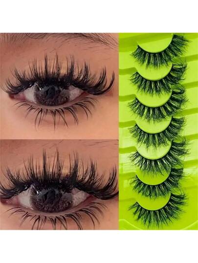 7 Pairs False Lashes Fairy Style Lashes Extension Natural Look Wispy Volume False Lashes Cat Eye Strip Lashes Pointed Faux Mink Lashes Multi-Pack - Natural Lashes - View 1