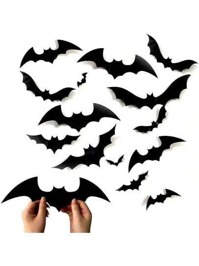 72 Pieces Per Pack Of Halloween Bat Decorations, 3D Black Stereoscopic Bat Wall Stickers, Reusable In 4 Sizes Per Pack, Suitable For Pasting On Bathroom, Bar, Restaurant, Bedroom Doors, Halloween Party Supplies, Winter Halloween Home Decoration Halloween Decor Room Decor - Black - View 3