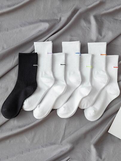 7pairs Embroidery Detail Crew Socks, Fall Socks - Multicolor - View 1