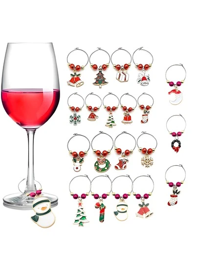 7pcs/13pcs Christmas Wine Glass Charms - Glass Ornaments For Stemware, Wine Glass Markers, Wine Tasting Party Favors And Holiday Decorations, Wedding And Birthday Supplies, Home And Party Decorations - Multicolor - View 1