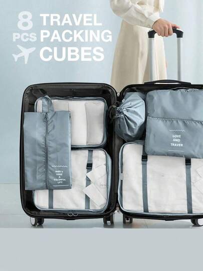 8pcs Large-Capacity Portable Travel Storage Bag, Multi-Functional Clothing Organization, Toiletries Storage Bag, Foldable Luggage Storage Bag. Suitable For Vacation, Travel, Business Trips, Gatherings, Parties, Friends, Family, Colleagues, Ladies, Halloween Gifts, Christmas Gifts, Thanksgiving Gifts, New Year Gifts - Multicolor - View 1