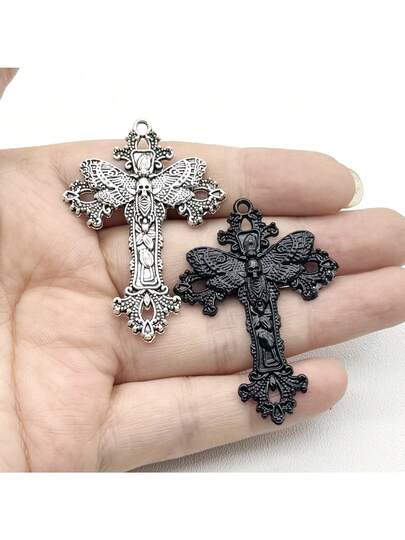 8 Pcs Alloy Moth & Cross Pendant, Gothic Jewelry Accessories For Men & Women - Moth Cross Small - View 14
