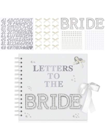 8" X 8" Modern Bride's Letter Scrapbook, Bridal Letter Scrapbook Wedding Keepsake Album, Blank Pages Bride DIY Scrapbook Guest Book With Pearl Stickers, Bows, And Metal Letter Stickers - White - View 1