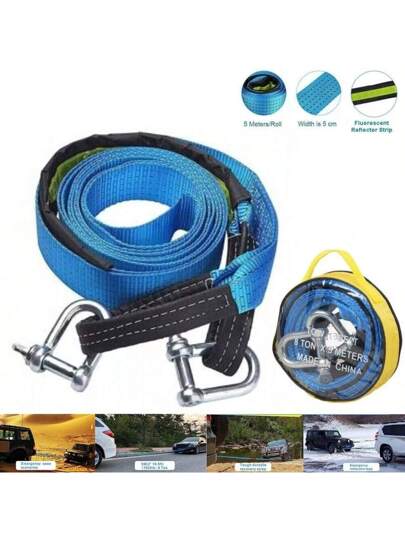 8T 16' 5M Tow Rope Heavy Duty Towing Pull Strap Road Recovery Two Shackles Chain - blue and black - View 5