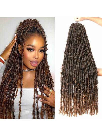 8pack/18Inch Butterfly Locs Crochet Hair Long Distressed Locs Crochet Hair Soft Faux Locs Pre Looped Multiple Colors - Khaki - View 1