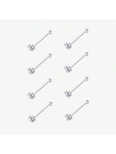 8pcs 1.5/2/2.5/3mm Cubic Zirconia Nose Piercing Jewelry Nose Studs, I L Shaped Shiny Crystal Bone Nostril Piercing Jewelry - Straight - View 8