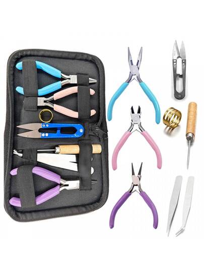 8pcs/1set, 2pcs/1set Is An Advanced Pliers Tool Kit For DIY Production, Which Includes Three Different Multifunctional Pliers, Two Tweezers, One Cone, One U-Shaped Scissors, And One Opening Ring. It Is Suitable For Beginners And Experts, And Is Easy To Store. It Is A Must-Have Tool Kit For Families (Three Pliers Pink/Purple Pink Blue) In Two Styles - Black Bag - View 11