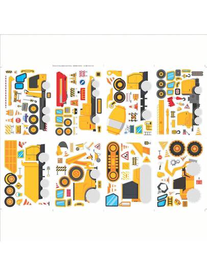 8pcs Construction Vehicle, Transportation, Car, Motorcycle, Car, Train Interactive Stickers. Construction Vehicle Tattoo Stickers, Space Excavator Robot Car Face Stickers. Perfect Birthday, Holiday, Christmas Gift, Toy - Multicolor - View 1