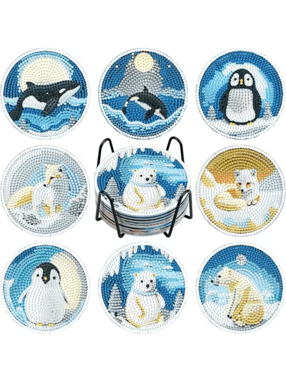 8pcs Diamond Painting Coasters With Holder, DIY Animal Pattern Diamond Art Coasters, Diamond Painting Kit Suitable For Adults And Beginners, Diamond Painting Craft Supplies, Exquisite Gift For Friends - Multicolor - View 1