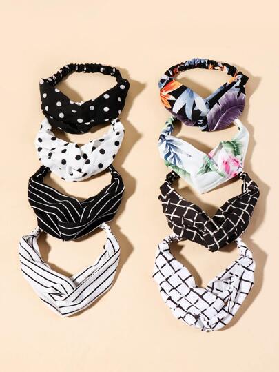 8pcs Plaid & Striped Pattern Headband - Multicolor - View 1