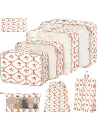 8pcs Portable Travel Storage Bag Set - Organize Your Clothing, Shoes, And Underwear With Ease - Perfect For Luggage And Suitcase Packing 8pcs Slogan Graphic Travel Storage Bag Portable With Shoe Toiletry And Laundry Bags School Supplies Room Decor Bedroom Decor Dorm Essentials For School Student Teacher - Multicolor - View 1