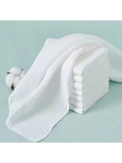 8pcs Reusable Soft Double-Layer Baby Towels, Soft And Absorbent - White - View 1