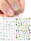 FULL BEAUTY 2sheets Cartoon Dinosaur Graffiti Style Nail Stickers Kawaii Sun Face Decals Maple Leaves Manicure Design Decoration DIY Nails Nail Supplies
