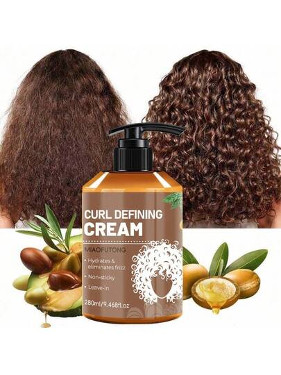 9.47 Oz, 1 Pack Argan Oil Curl Defining Cream, Anti-Frizz, Enhance Elasticity, Moisturize, Long-Lasting Style, Hair Care Products For Dry And Curly Hair, Styling Products, Castor Oil Curl Defining Cream, Positive Poetry, Create Gorgeous Hair. - 9.47oz/280ml - View 1