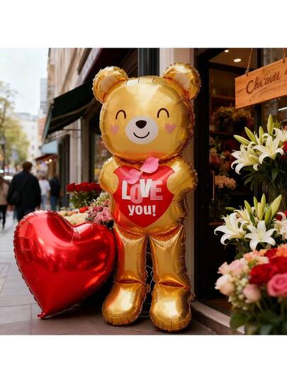 9/5/2/1pcs 60-Inch Selfie Hug Heart Shaped Love Teddy Bear Balloons With "I Love You" Text And 18-Inch/32-Inch Red Heart Foil Balloons For Pink And Brown Wedding Decor, Valentine's Day Decor, Anniversary, Bridal Shower, Birthday Party Supplies - No Power Needed, Mother's Day, Thanksgiving - Multicolor - View 18