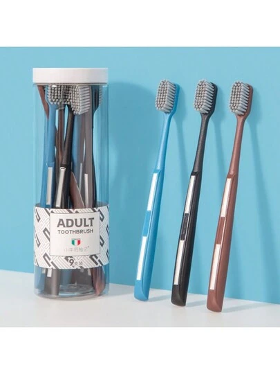 9 Medium Bristle Toothbrushes 3 Colors Big Head Adult Toothbrush Barrel Style Frosted Brush Handle - Multicolor - View 1