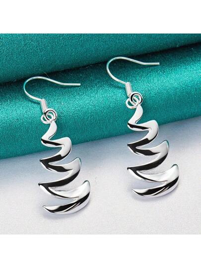 925 Silver Plated Charm Geometry Earrings For Women Fashion Wedding Engagement Party Jewelry - Silver - View 1