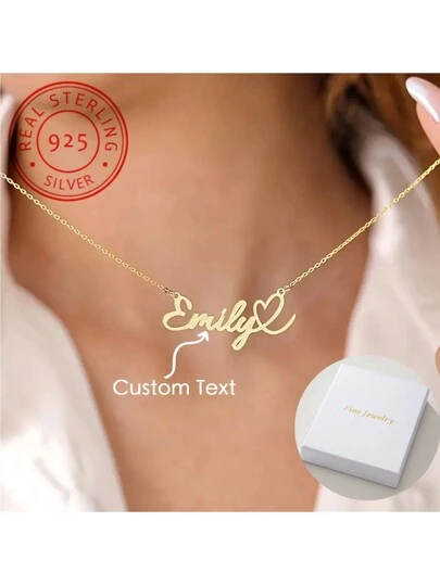 925 Sterling Silver Personalized English Name Heart Pendant Necklace, A Unique And Meaningful Gift, Warm And Distinctive Jewelry Accessory, Luxury Unisex Jewelry, Available In Gold, Fashionable, Multicolor, Retro, Neutral, Minimalist, Casual, Customized, Personalized, One-Of-A-Kind, Ideal Gift For Him, Ideal Gift For Her - Multicolor - View 1