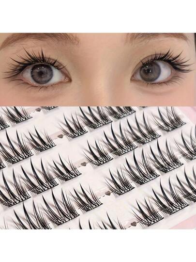 96pcs/48pcs Butterfly Orchid Self-Adhesive False Eyelashes, Single Cluster Eyelashes, Thick & Natural Look, Suitable For Beginners, Party, Cosplay, Length 10-13mm, MIXIAOHE Lash Clusters,Eye Lash Clusters,Individual Eyelashes,Lashes,Fake Lashes - C - View 1