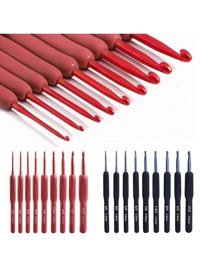 9pcs Red/Black Crochet Hooks Needle Silicone Handle Aluminum Soft Crochet Needle Set DIY Knitting Needles For Beginners Weave Sewing Knitting Tool - Multicolor - View 1