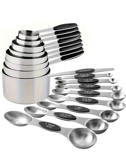 9pcs, Stainless Steel Measuring Cup And Spoon Set, Heavy-Duty Measuring Scoop, Double-Sided Magnetic Measuring Spoons, Used For Tea, Coffee, Dry And Liquid Ingredients, Baking Tools, Kitchen Stuff - - - View 1