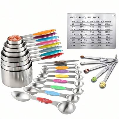 9pcs Stainless Steel Measuring Spoon Set, Magnetic Stackable Metal Measuring Cups, Suitable For Measuring Dry & Wet Cooking Ingredients, With US/Metric Scale, Ideal For Spices, Powders, Oils And Coffee, Perfect Kitchen Baking & Cooking Tool - - - View 1
