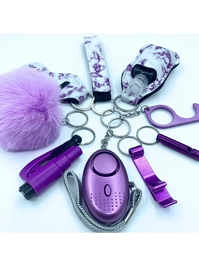 9pcs Women's Self-Defense Alarm Keychain, Window Breaker, Bottle Opener, Wristband, Hand Sanitizer Bottle Holder, No Contact Door Opener, Whistle, Keychain, Holiday Gift - Purple - View 1