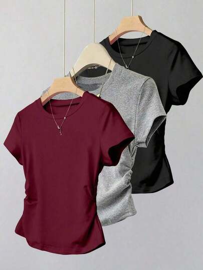 A Simple Solid-Color Short-Sleeved T-Shirt Set For Women, Suitable For Daily Wear And Easy To Match With Various Outfits. Includes 1 Piece