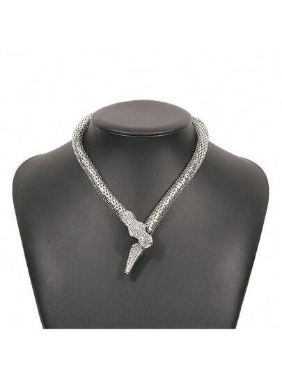 A Bold Snake Shape Necklace, Punk Personalized Hip-Hop Style Pendant, Streetwear Show Micro-Inlaid Chain, Suitable For Women Wear - Silver - View 1