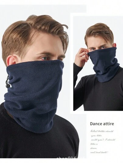 A Men's Autumn And Winter Warm Neck Scarf, Windproof And Cold-proof Cycling Mask, Versatile Thickened Soft Cervical Spine Neck Cover, Outdoor Fleece Hood Mask - Navy Blue - View 1