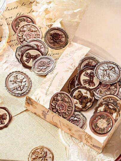 A Pack Of 20 Letterpress Embossed Fire Paint Handbook Stickers, Retro Creative Aesthetic Stickers, DIY Decorative Collage Handmade Materials, Holiday Gifts, Personalized Scrapbook School Stationery Supplies,Sticked On Handbook Diary,Suitcase Computer Water Cup Mobile Phone Case Refrigerator Wall Helmet Cabinet Box Door Bed Guitar Scrapbook Supplies Funny Stickers Laptop Stickers Kindle Phone Stickers - Brown - View 6