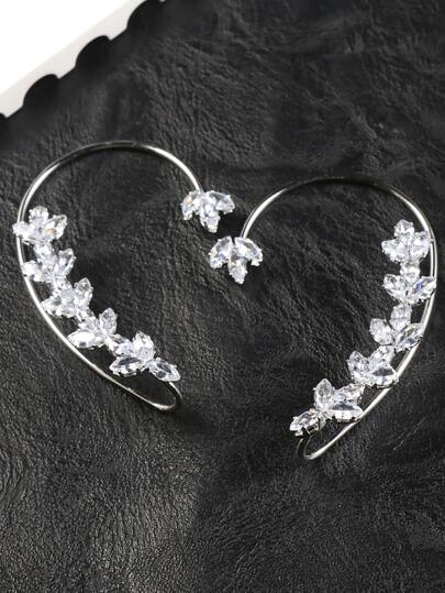 A Pair Of Super Fairy Cubic Zirconia Flower Leaf Ear Hanging Without Ear Hole Simple Elegant Ear Clip Ear Bone Clip - Silver - View 1