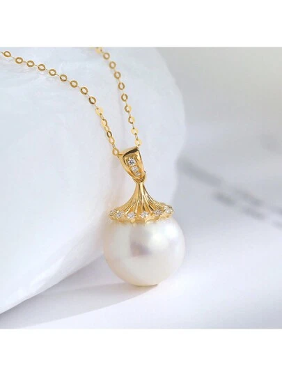 A Unique, Fashionable And Elegant Natural Freshwater Pearl Pendant Necklace Made Of Genuine AU750/18K Gold. Suitable For Daily Wear, Weddings, Parties, Birthdays, Anniversary Celebrations, Bridesmaids Gifts, Wedding Gifts, Engagement Necklaces (Certificate Included, Chain Not Included). - Yellow Gold - View 1
