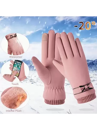 A pair of unisex windproof and waterproof touch screen gloves, winter snowboarding and skiing gloves, all finger fleece touch screen, waterproof motorcycle warm snow gloves - Pink - View 1