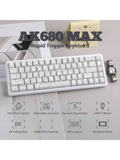 AJAZZ AK680MAX Wired Hall Effect Mechanical Keyboard, 68 Keys Hot-Swappable, Customizable Mechanical Keyboard, Mixed Backlighting, Compact & Portable, RGB Lighting, DIY - AJAZZ Official Authentic Products - View 1