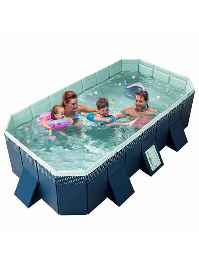 AOTO Extra-Large Family Swimming Pool, Non-Inflatable Foldable Hard Plastic Outdoor Pool For Adults, Children, Infants, Pets - Easy Set Up, Rectangular Design For Backyard, Beach - Blue - View 9