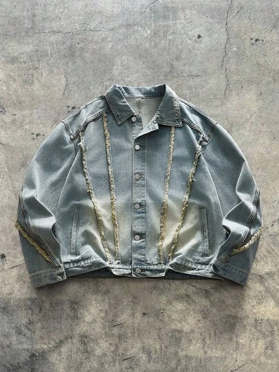 AXEPEAK Men's Long Sleeve Casual Washed Shirt Jacket, Stylish Lapel Collar - Blue - View 1