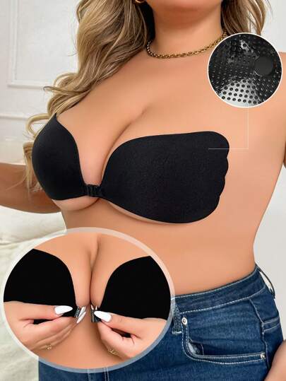 Accessories For Plus-Size Women Solid Color Nipple Covers Bra - Black - View 1