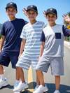 SHEIN 6pcs/Set Tween Boy Casual Sporty Striped Colorblock Round Neck Short Sleeve T-Shirt & Shorts Set, Suitable For Commuting, School, Daily Casual, Sports, Spring/Summer
